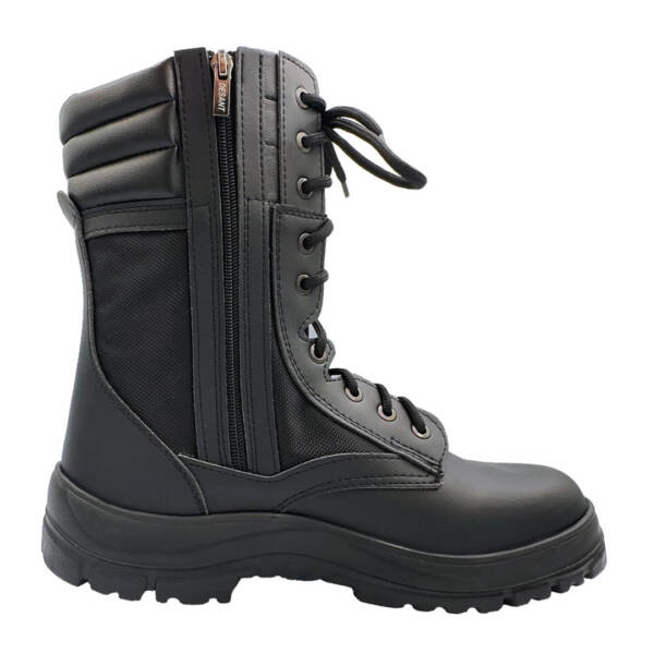 Cholewka: wykonana ze Mikrofibry w kolorze czarnym oraz z nylonu balistycznego CORDURA® charakteryzujące się wzmocnioną konstrukcją. Nylon zapewnia obuwiu zwiększoną oddychalność i jednocześnie jest odporny na rozcięcia oraz rozdarcia, dodatkowo impregnowany jest fluorokarbonem. Wysoko wszyty język utrudnia przenikanie wody do wnętrza. Obuwie sznurowana z wszytym od wewnętrznej strony cholewki suwakiem, którego zastosowanie umożliwia szybkie zakładanie i zdejmowanie obuwia w systemie ZIP & GO.