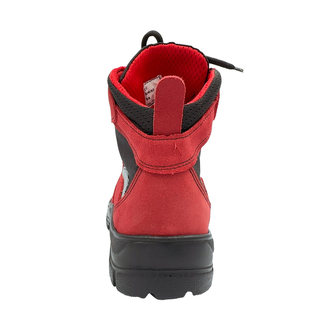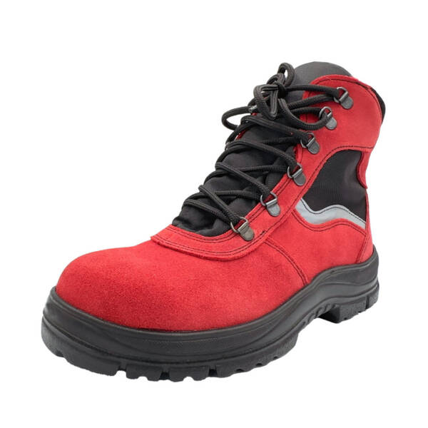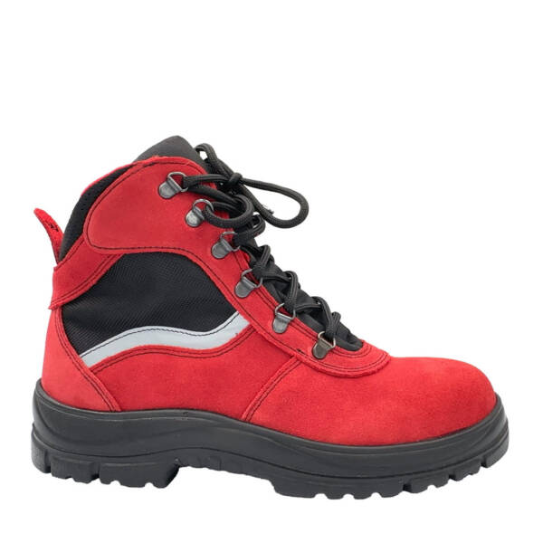 Cholewka: wykonana z dwoiny nubuk w kolorze czerwonym z paskiem odblaskowym w tylnej części